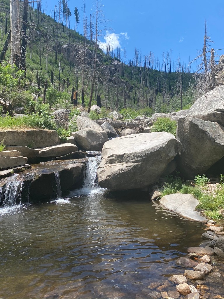 - Hiking – there are tons of really beautiful places to hike around Ruidoso. My favorite is trail #19 in the Lincoln National Forest. It’s kind of hard to find so I would suggest googling South Fork Campground and starting there. The trail starts at this campground. You will drive past the remains of Lake Bonita. This area was devastated by a wildfire back in 2012. They have had to drain the lake to clear out soot, dead fish, etc. Trail #19 is not what it used to be but it’s still beautiful. Most of the trees were burned but it’s slowly coming back to life. There are quite a few waterfalls. There used to be one that could be slid down but it’s blocked by a fallen tree now. I’ve been hiking this trail and sliding down this waterfall since I was 5 or 6…..definitely as far back as I can remember. Go check it out!