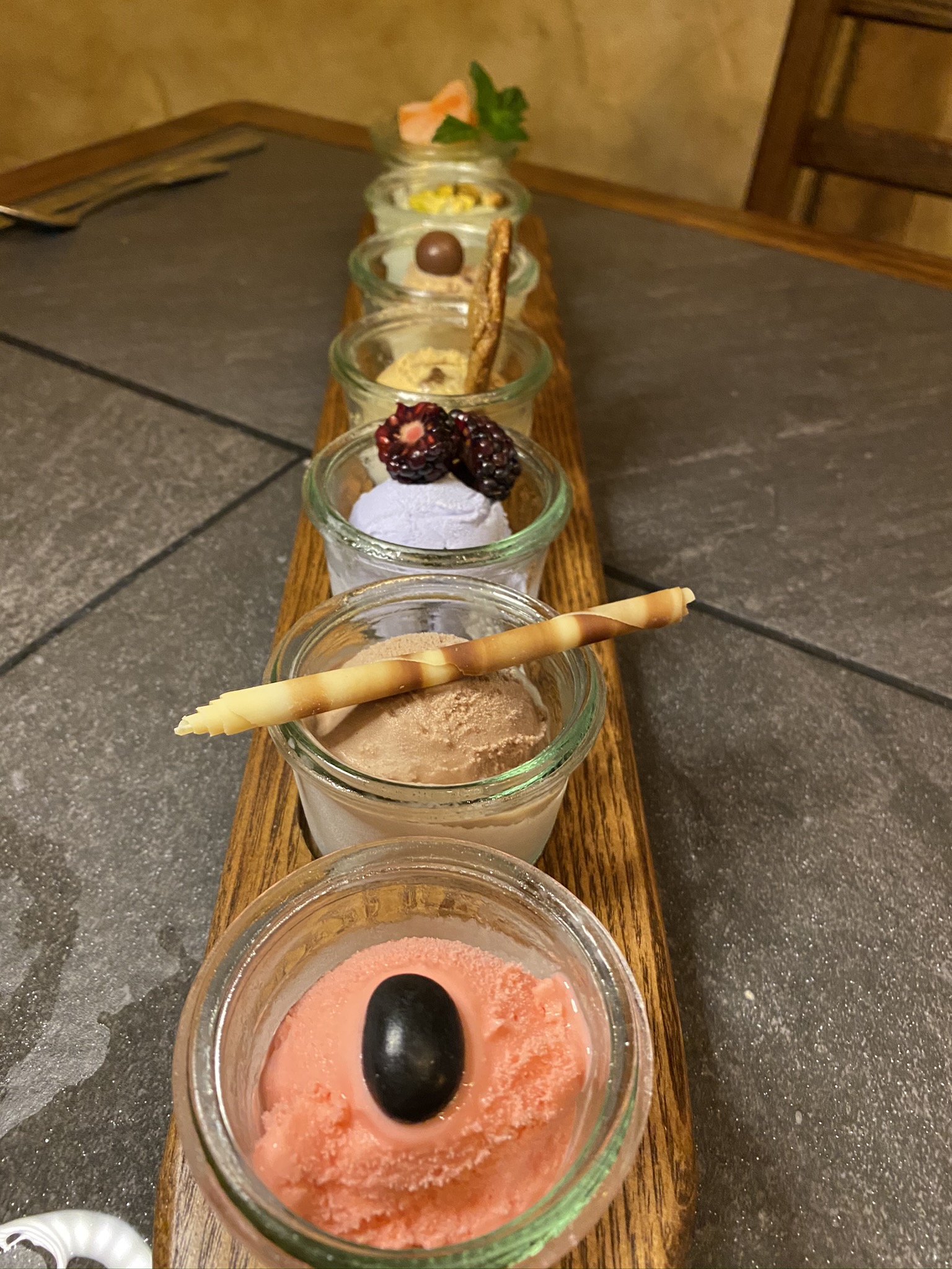 - For a date night or nicer dinner – check out Cabernet Grill. They have an amazing wine selection. Appetizer – Texas Twinkies. Meal – strip steak. Side – street corn. Dessert – anything or the Frozen Adventure Flight. Make a reservation. The outdoor seating area is absolutely beautiful! They even have accommodations! Ask for Rebecca to make wine suggestions! Their wine selection is first class!