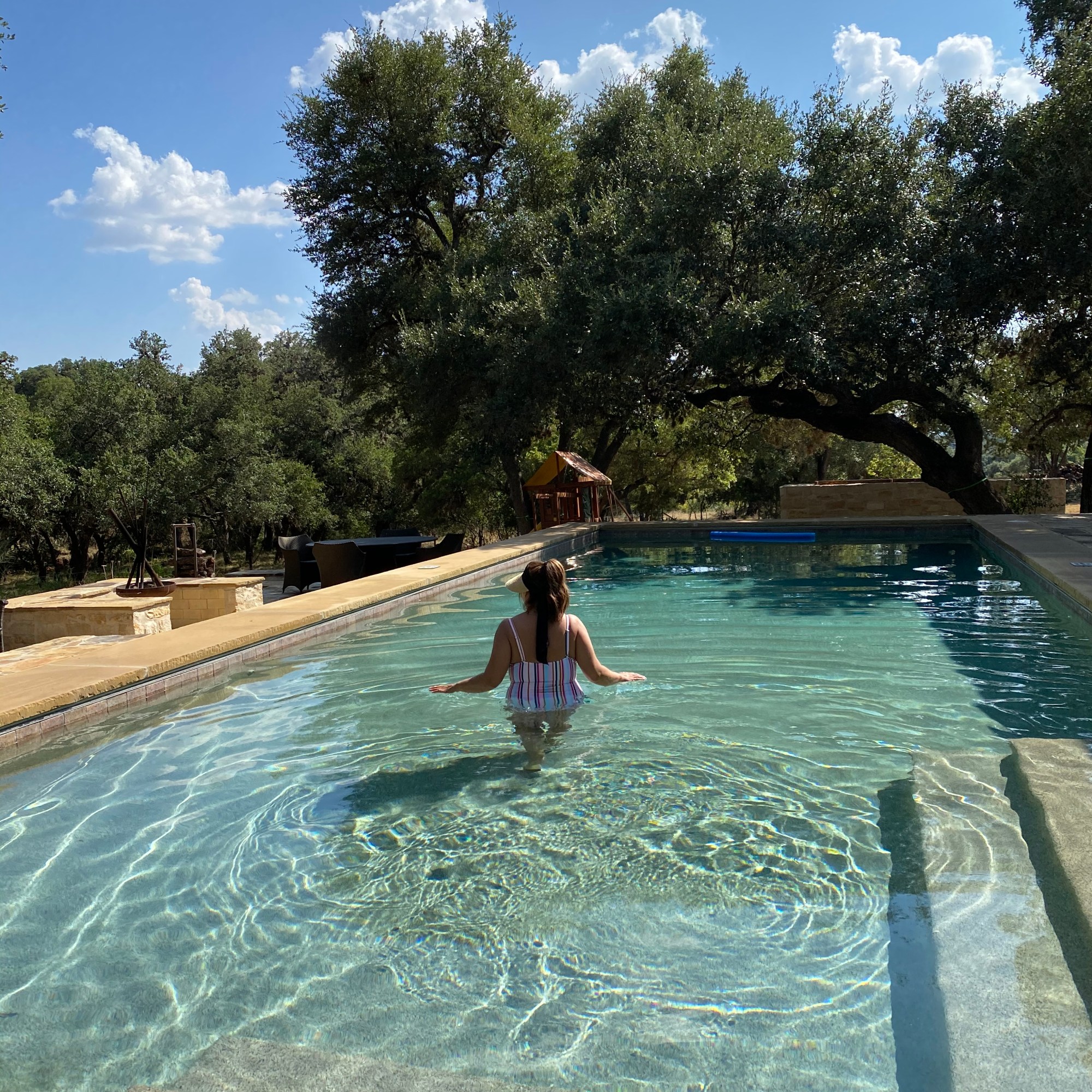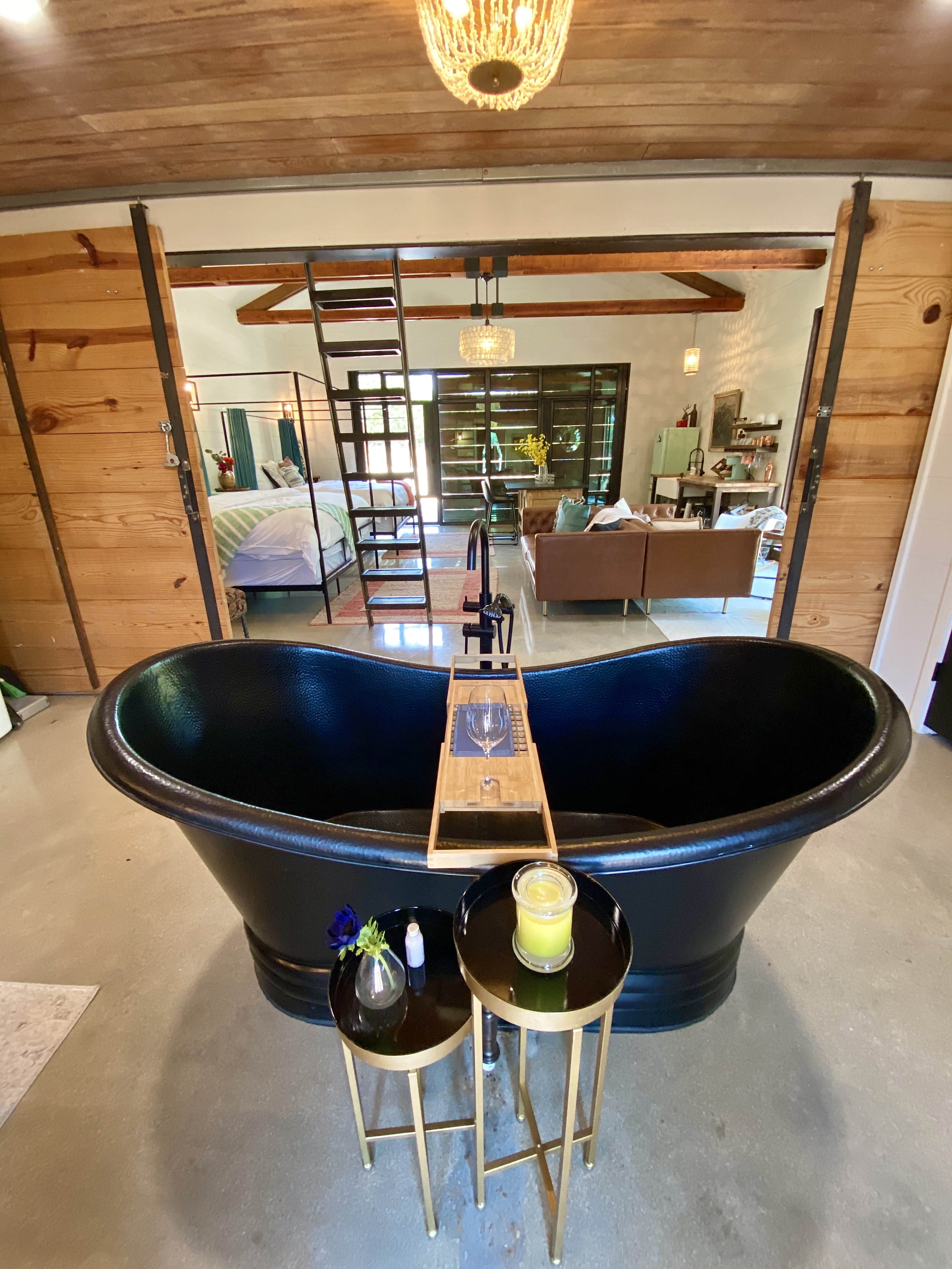 - Tipsy Peach Haus – this place is a spa-like retreat! Huge swimming pool perfect for exercising or lounging. There’s also lots of outdoor living spaces! The sunsets at the overlook will take your breath away! Oh and did I mention there’s also a barn that they rent out separately! This is not your average barn! It’s straight out of a magazine!