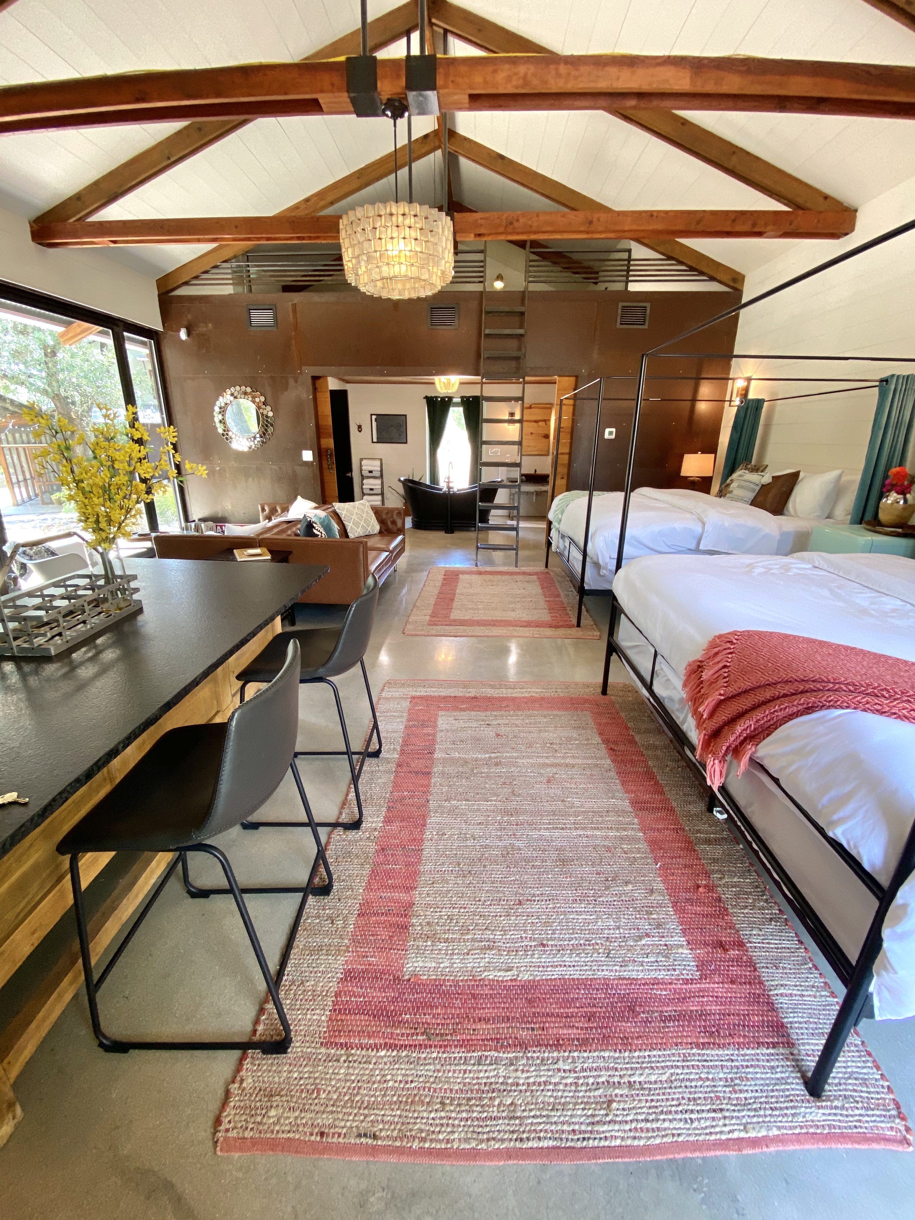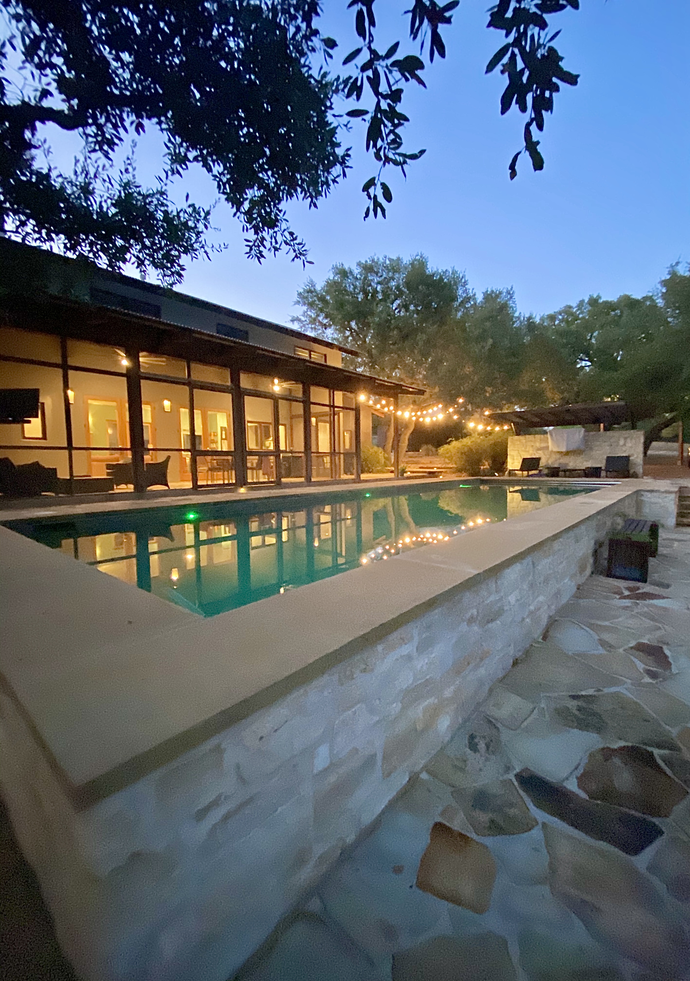 - Tipsy Peach Haus – this place is a spa-like retreat! Huge swimming pool perfect for exercising or lounging. There’s also lots of outdoor living spaces! The sunsets at the overlook will take your breath away! Oh and did I mention there’s also a barn that they rent out separately! This is not your average barn! It’s straight out of a magazine!